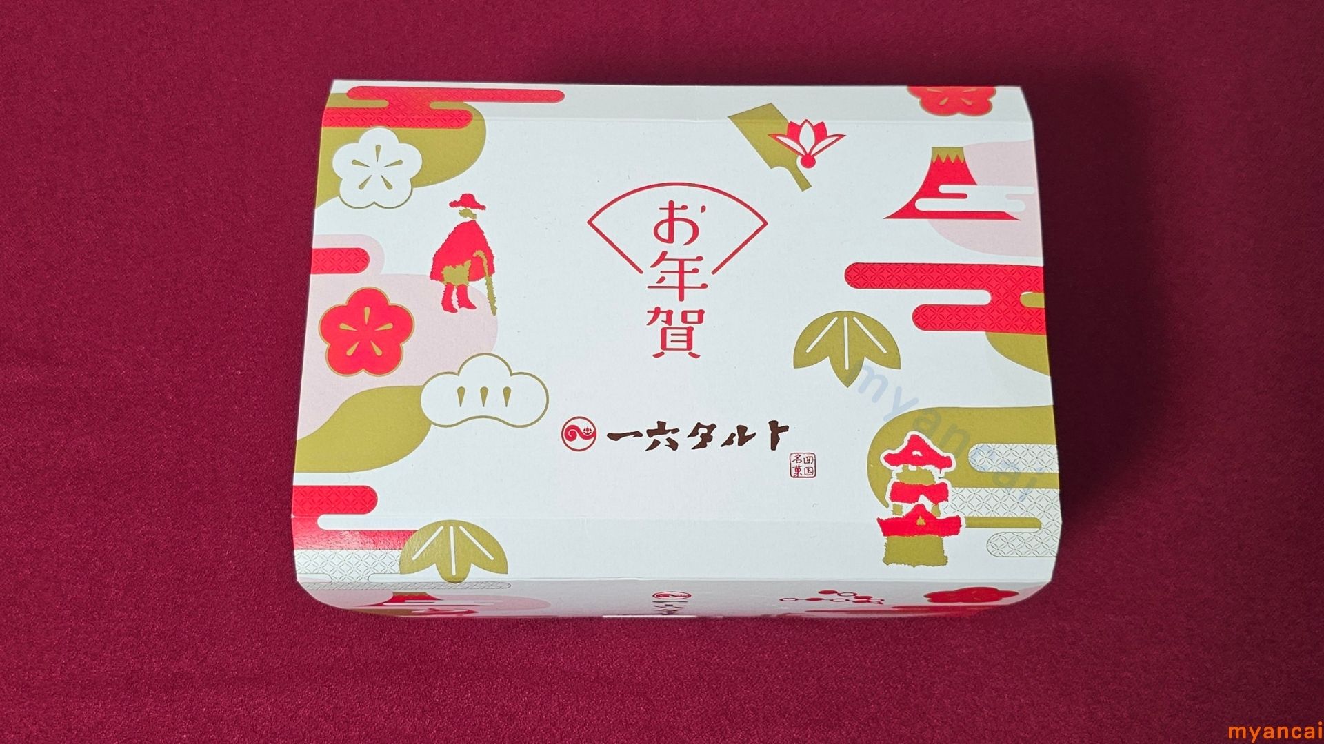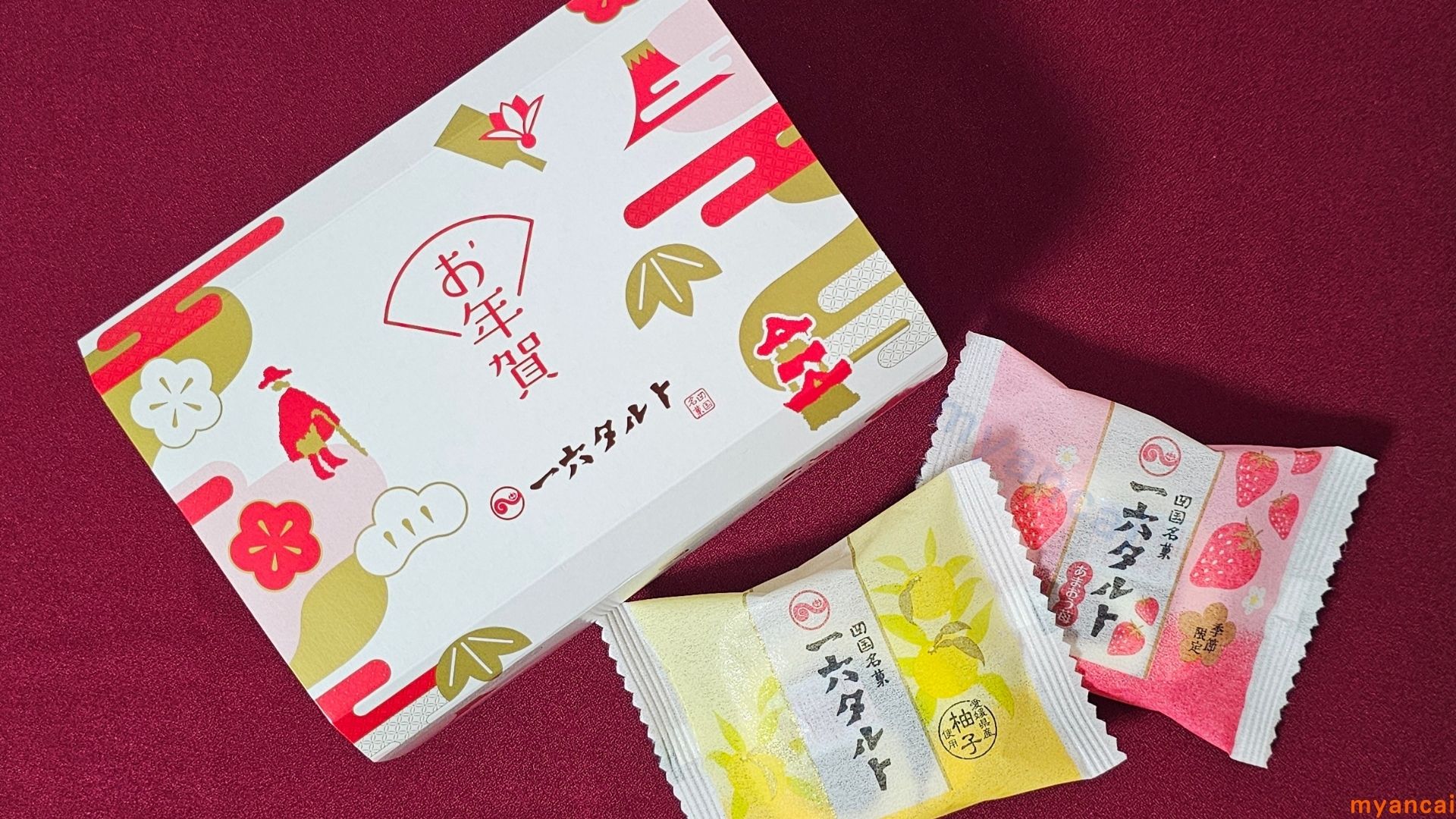 お正月に合わせたギフトセット『ひと切れ紅白一六タルト』。お正月ならではのパッケージが華やかで目をひきました。